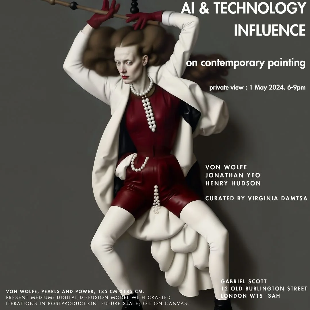 The "AI & Technology Influence on Contemporary Art" exhibition explores the impact of technology on contemporary artists, revealing how AI has shaped and challenged their creative processes while sparking profound dialogues on its implications. In “AI & Technology Influence on Contemporary Art," artists Jonathan Yeo, Von Wolfe, and Henry Hudson have embraced AI and technology to redefine the essence of a new series of works, seamlessly integrating artificial intelligence and cutting-edge technologies. Through these groundbreaking works, they explore and masterly navigate the complex relationship between humanity and machines, prompting a re-evaluation of art's future, probing the boundaries of AI's capacity to expand or limit artistic expression, extending to questions of identity, development, authorship, authenticity, originality, reality, and the evolving landscape of creativity in the digital age.