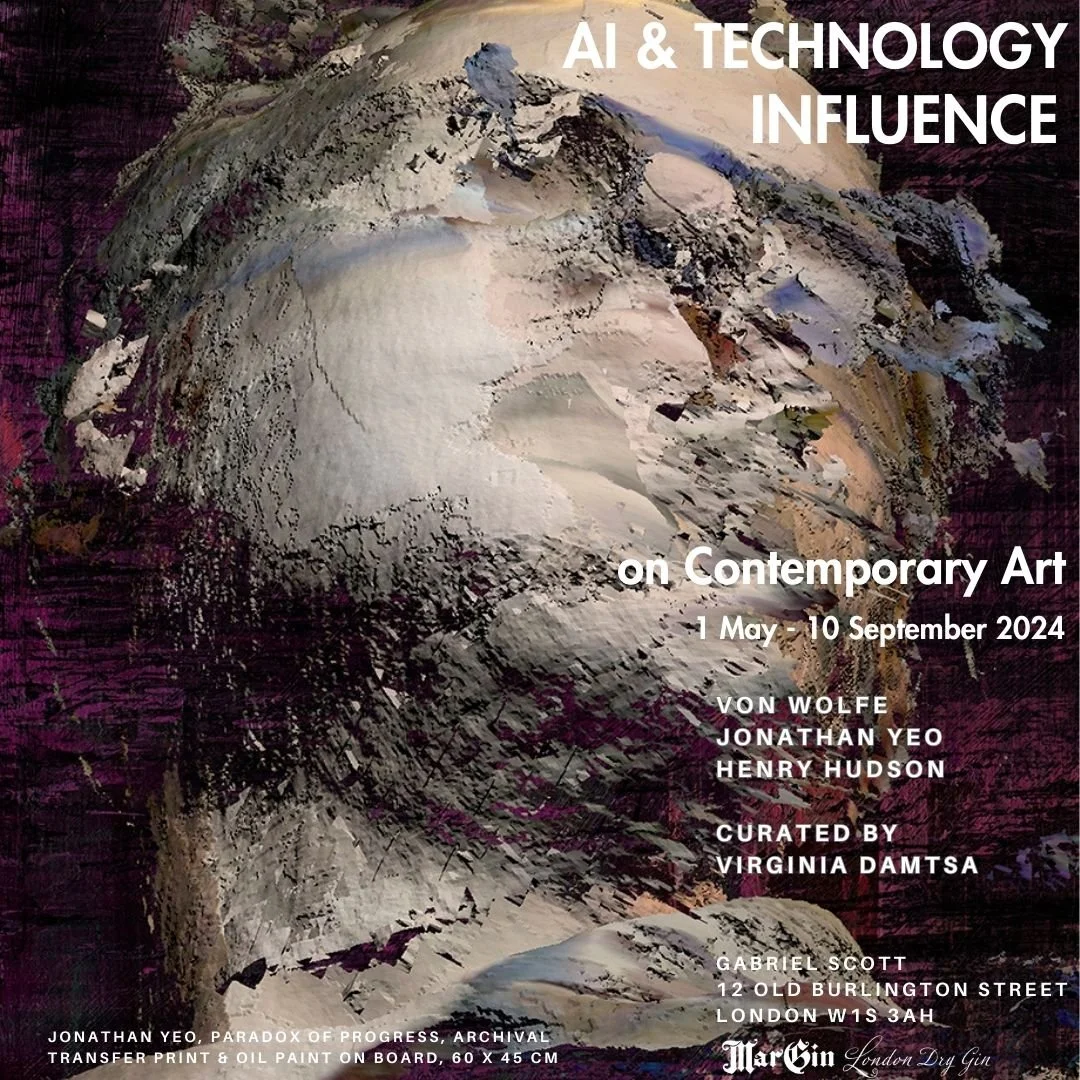 The "AI & Technology Influence on Contemporary Art" exhibition explores the impact of technology on contemporary artists, revealing how AI has shaped and challenged their creative processes while sparking profound dialogues on its implications. In “AI & Technology Influence on Contemporary Art," artists Jonathan Yeo, Von Wolfe, and Henry Hudson have embraced AI and technology to redefine the essence of a new series of works, seamlessly integrating artificial intelligence and cutting-edge technologies. Through these groundbreaking works, they explore and masterly navigate the complex relationship between humanity and machines, prompting a re-evaluation of art's future, probing the boundaries of AI's capacity to expand or limit artistic expression, extending to questions of identity, development, authorship, authenticity, originality, reality, and the evolving landscape of creativity in the digital age.